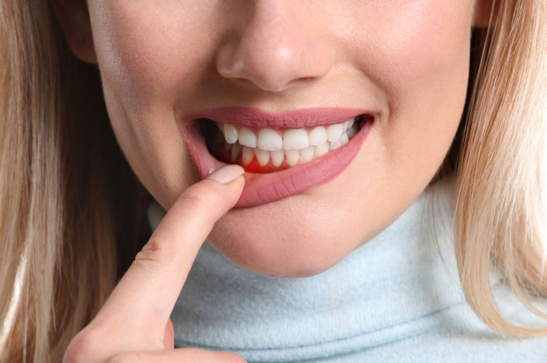 Kırmızı, şiş ve hassas dişetleri.